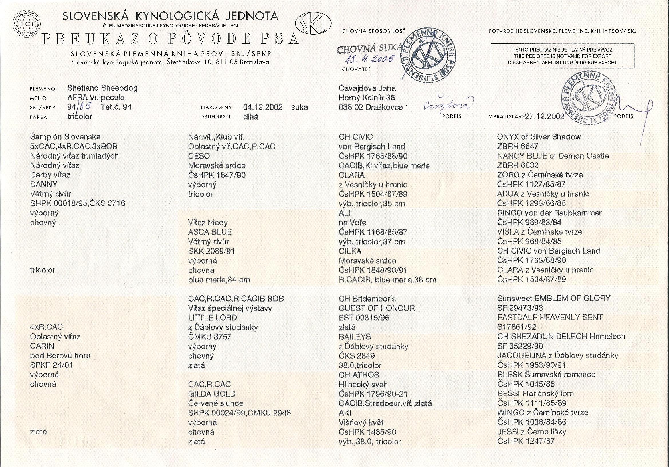 ostatné triedy 5 výstav, hodnotenie CAJC, CAC, R-CAC, vždy výborná